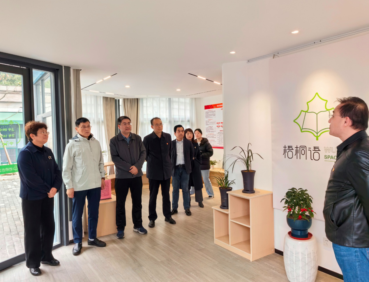 共商:参观新建成并投入使用的“梧桐语政协书屋—便民服务驿站”,该项目已列入全市“一社区一案例”重点培育项目