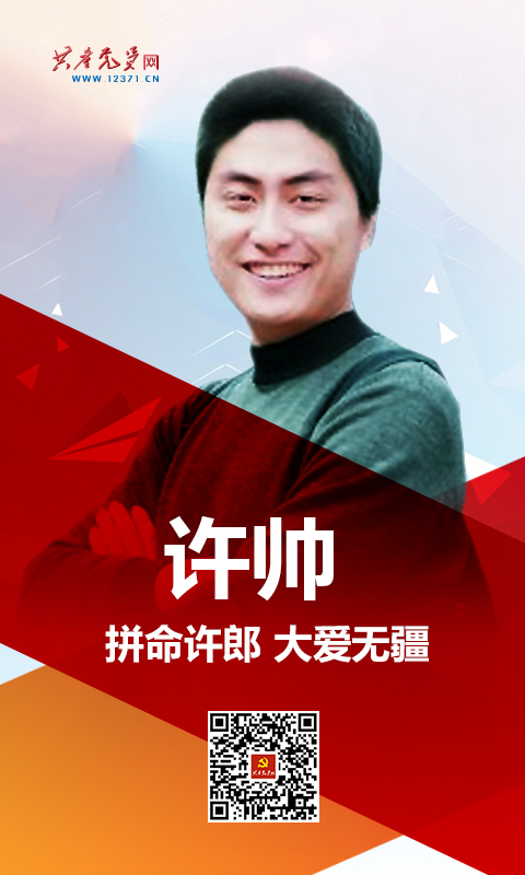 许帅,男,汉族,河北磁县人,1979年11月出生,2002年9月参加工作,2005年12月加入中国共产党,河南省安阳市救助管理站原站长。2016年9月1日,因病医治无效去世,年仅36岁。许帅同志始终把为人民服务作为自己人生追求,放弃原本稳定的机关工作,主动向组织请缨到救助管理站工作。他把共产党人的大爱情怀无私奉献给困难群众,劝导露宿街头的流浪乞讨人员来站接受救助,在全国率先设立医疗安置区,关爱帮助聋哑流浪儿童重返校园,想方设法为受助人员寻亲,3年累计救助1.5万余人次。他视事业重于生命,恪尽职守,忘我工作,即使身患癌症,仍以常人难以想象的毅力拼命工作,直到生命最后一刻。他去世后捐献了遗体和眼角膜,完成“救助生涯的最后一站”,用生命诠释了“为民甘做孺子牛”的精神。