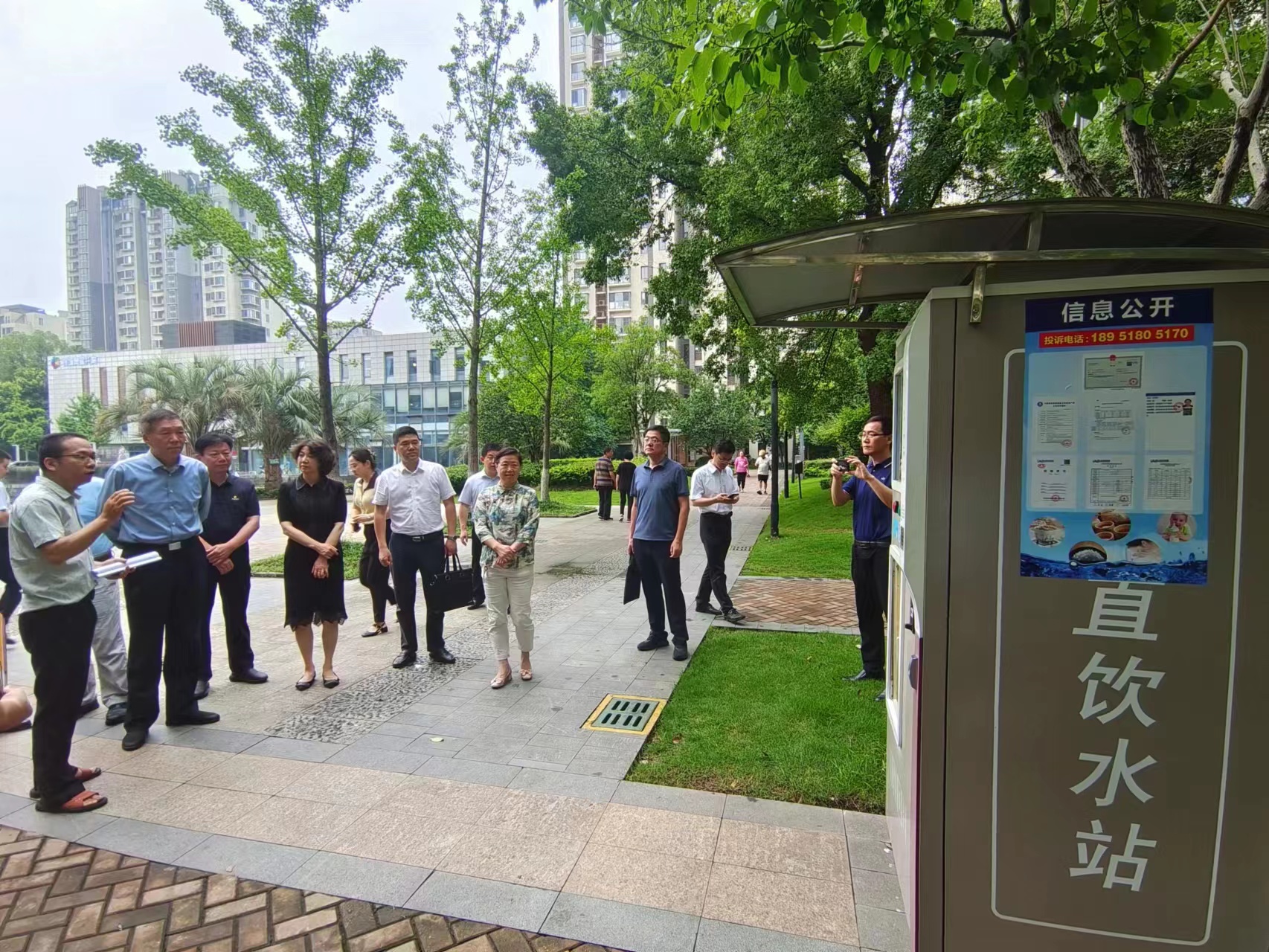 黄利民副主席一行实地察看了建邺区银城西堤国际小区现制现售直饮水现场,详细了解机器的安装、使用、销售、监管等具体情况,察看各类标识、标牌、公示是否规范齐全,管理运行是否安全有序。