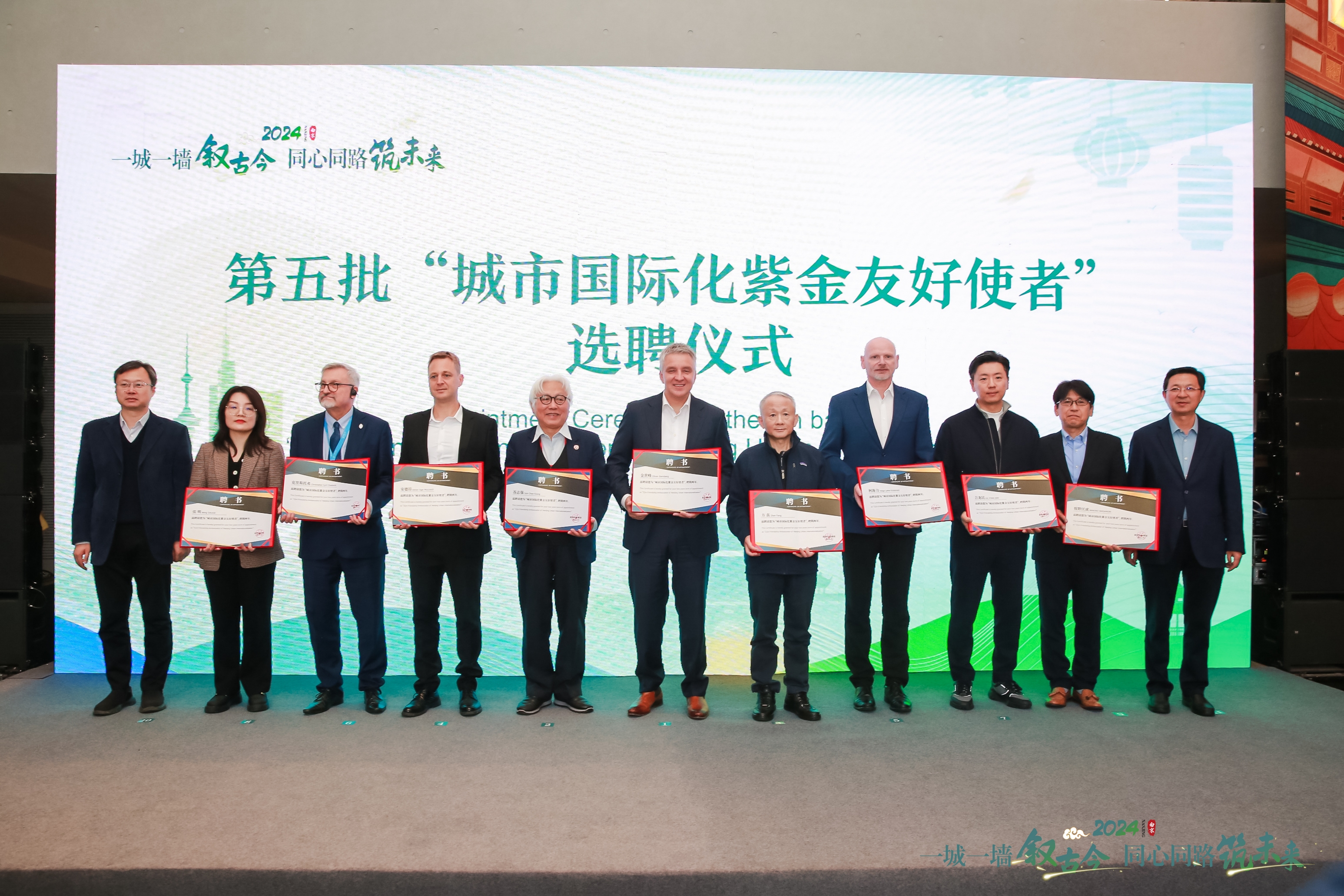1118日下午,由市商务局、市文化和旅游局、市外办、秦淮区政府共同主办的2024第五批“城市国际化紫金友好使者”选聘仪式在南京城墙博物馆举行。市政府副市长季铁军、市政协副主席金卫东出席选聘仪式,并为东南大学土木工程学院特聘教授苏志强、博西家电集团大中华区高级副总裁兼首席运营官金世峰等热心于南京城市国际化建设的国际友人、海外华人颁发“城市国际化紫金友好使者”聘书。