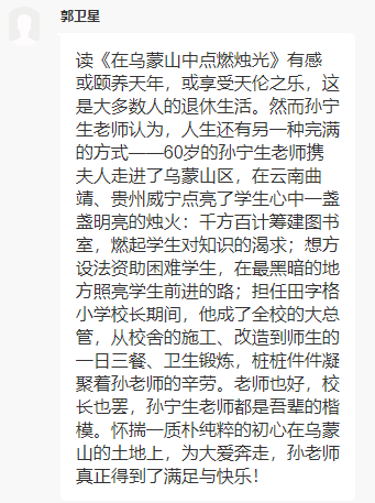 郭卫星委员分享《在乌蒙山中点燃烛光》