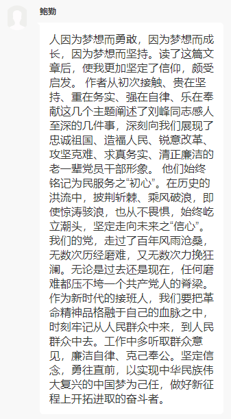 鲍勤委员分享《革命一生虔为民,百年追梦炼丹心——记刘峰同志感人至深的几件事》