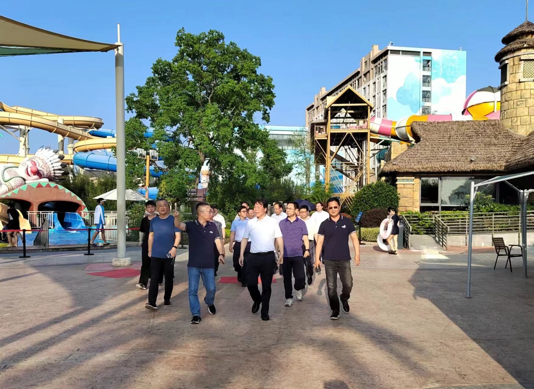 在南京欢乐谷和玛雅海滩水公园,大家边走边看,边看边听,了解建设运营情况。南京欢乐谷是欢乐谷在全国连锁的第8站,选址在栖霞山东侧,毗邻长江。南京玛雅海滩水公园是南京欢乐园姊妹园,由全球顶级机构规划设计,引入20多套大型玩水设备。李奇肯定南京欢乐谷“常建常新、常玩常新、常看常新”的经营理念,建议增加创意文艺活动,融入夜游、夜展、夜演文艺生活新业态,为现代都市人提供愉悦身心的多元化旅游休闲方式与都市娱乐产品。