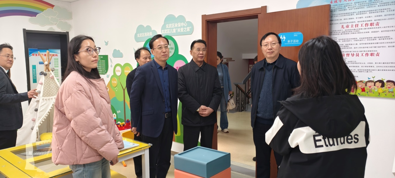 上午,调研组一行调研了南京脑科医院、玄武区锁金村社区卫生服务中心、南京市第十三中学锁金分校、锁金村街道未成年人保护工作站(儿童关爱之家),了解医院、学校、街道、社区推进心理健康服务体系建设情况。