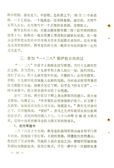 南京军校教导总队参加“一·二八”淞沪抗日战争的点滴回忆