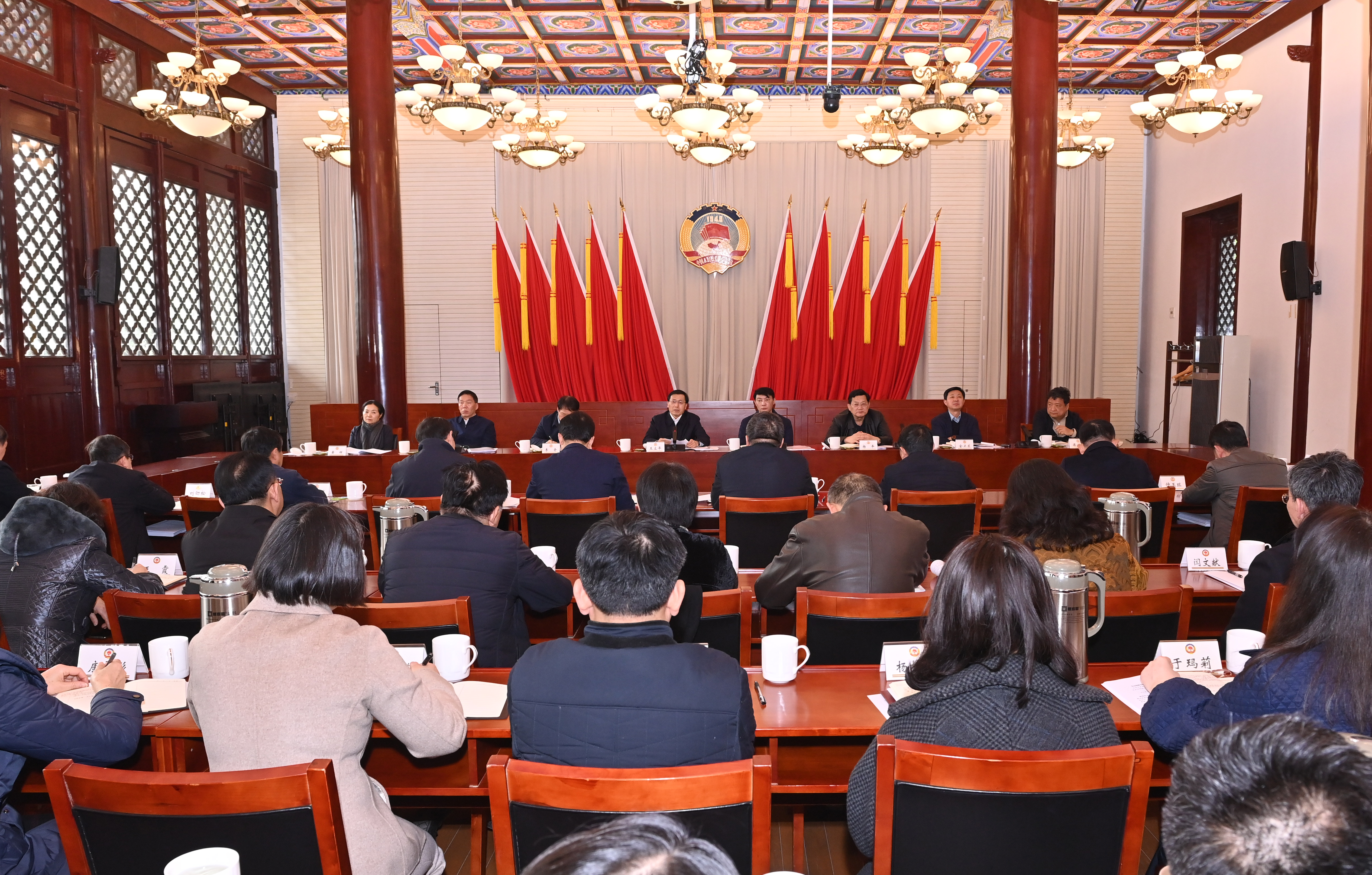 王立平指出,习近平总书记在全国两会期间的重要讲话,立意高远、思想深邃、内涵丰富,强调的都是事关现代化建设全局的重点问题、关键问题,为在新征程上全面推进中国式现代化江苏新实践提供了根本遵循和科学指南。我们要深刻领悟“两个确立”的决定性意义,坚决做到“两个维护”,自觉把思想和行动统一到习近平总书记重要讲话精神和党中央决策部署上来,在思想引领、服务大局、汇聚力量、机关建设等各项工作上更上层楼、做得更好。