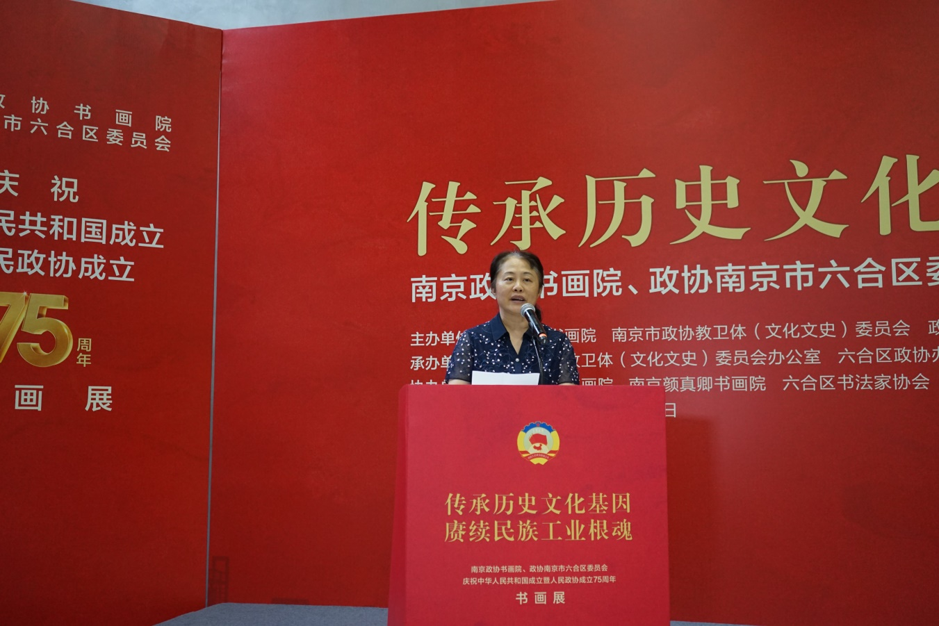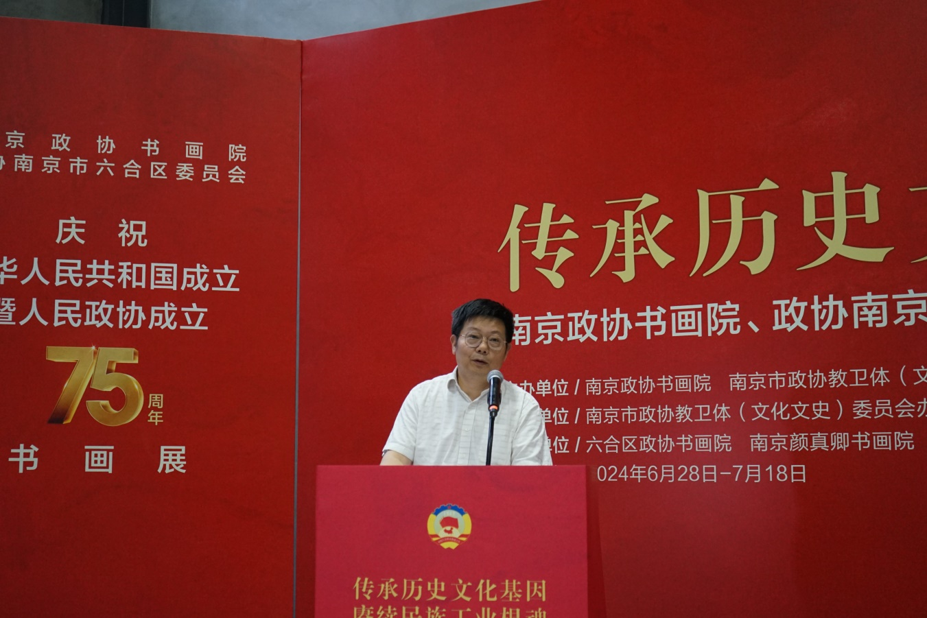 6月28日下午,由南京政协书画院、南京市政协教卫体(文化文史)委员会和六合区政协联合主办的“传承历史文化基因 赓续民族工业根魂——庆祝中华人民共和国成立暨人民政协成立75周年书画展”在1934文化产业园文化艺术空间开幕。南京市政协副主席、南京政协书画院院长李奇出席活动并宣布书画展开幕,南京市政协教卫体(文化文史)委员会副主任、一级巡视员、南京政协书画院执行院长纪增龙致辞,六合区政协主席孙宇瑾讲话。