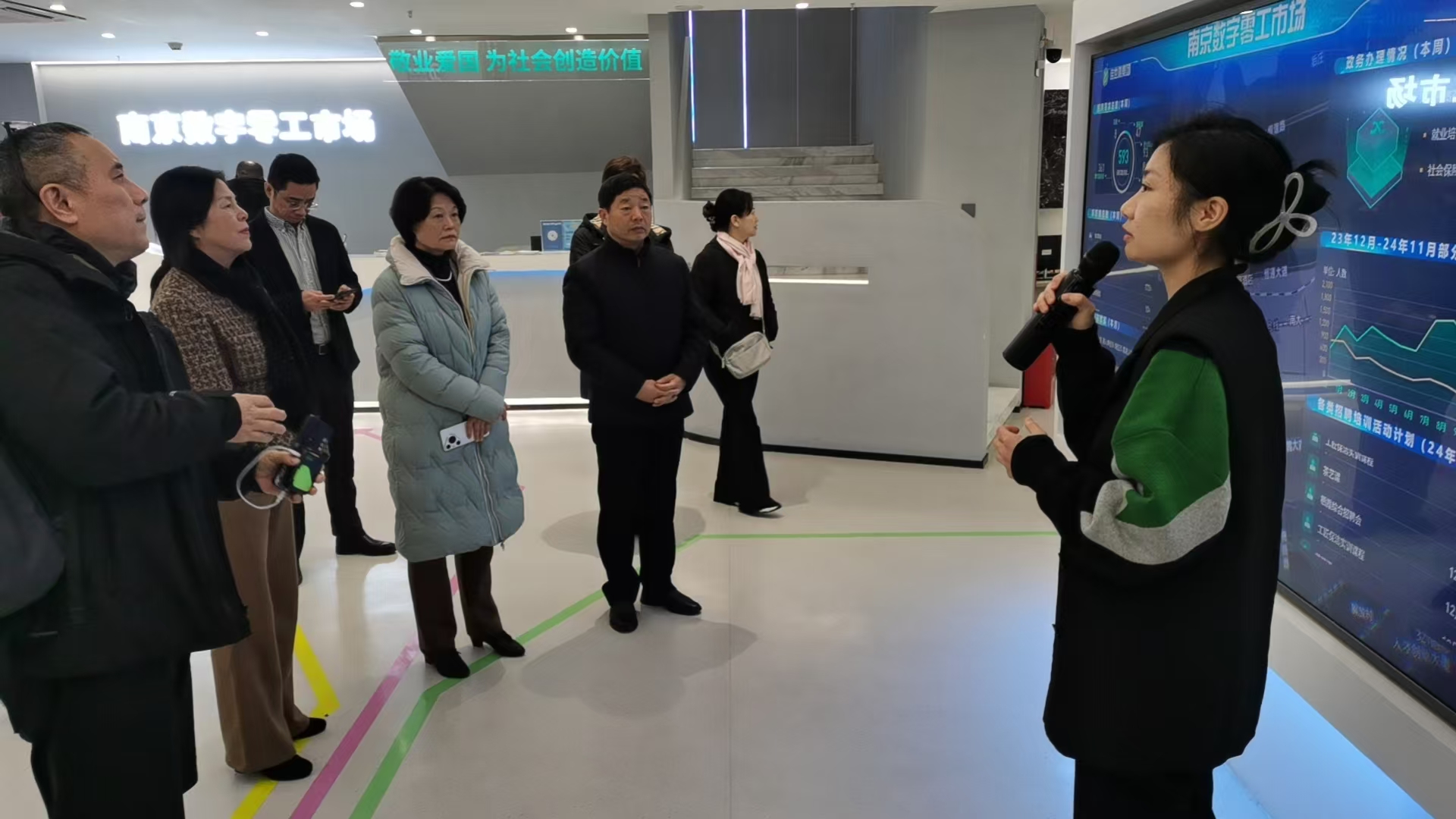 委员们来到南京数字零工市场,参观大数据平台、招聘平台、培训管理系统、数字直播间、工匠保洁管理等数字化场景,委员们充分肯定了南京数字零工市场的建设理念、服务功能,并就提供精准的人力资源供需对接、帮扶重点群体实现高质量精准就业等问题提出了意见建议。