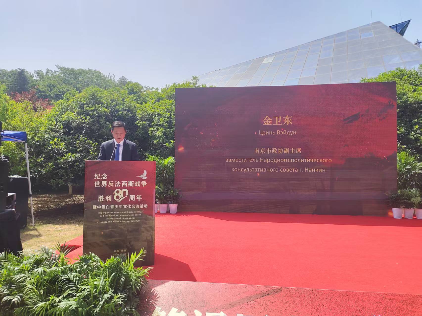 5月7日,“纪念世界反法西斯战争胜利80周年暨中俄白青少年文化交流活动”在南京抗日航空烈士纪念馆(简称纪念馆)举行。市政协副主席金卫东、俄罗斯驻上海总领事卢基扬采夫、白俄罗斯驻上海副领事克里维茨等出席活动并致辞,市政协港澳台侨和外事委员会主任李保平,中山陵园管理局局长汪东明、副局长廖锦汉,市外办副主任孙曼,市教育局一级调研员卢普新参加活动。