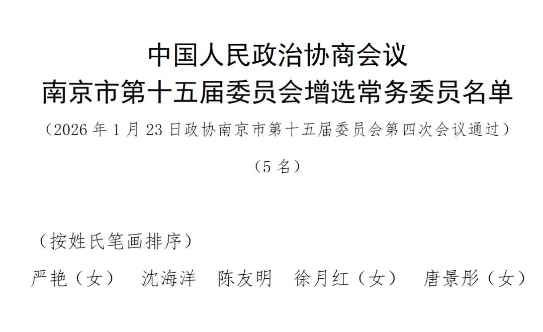 中国人民政治协商会议南京市第十五届委员会增选常务委员名单
