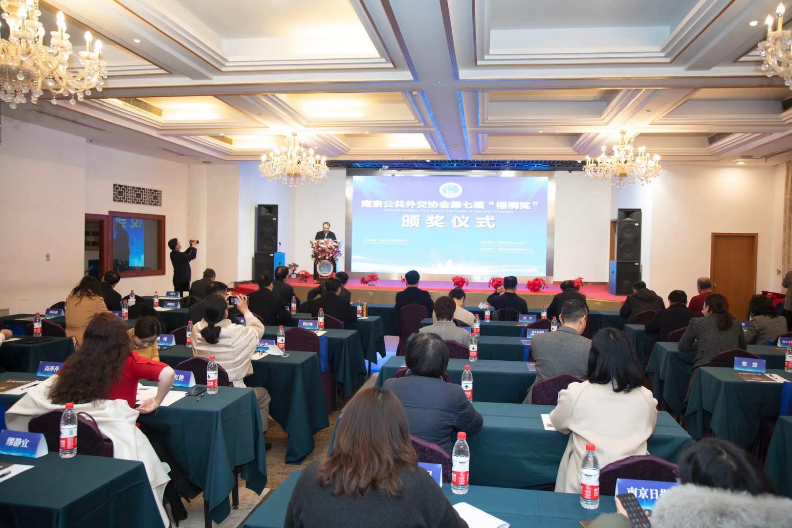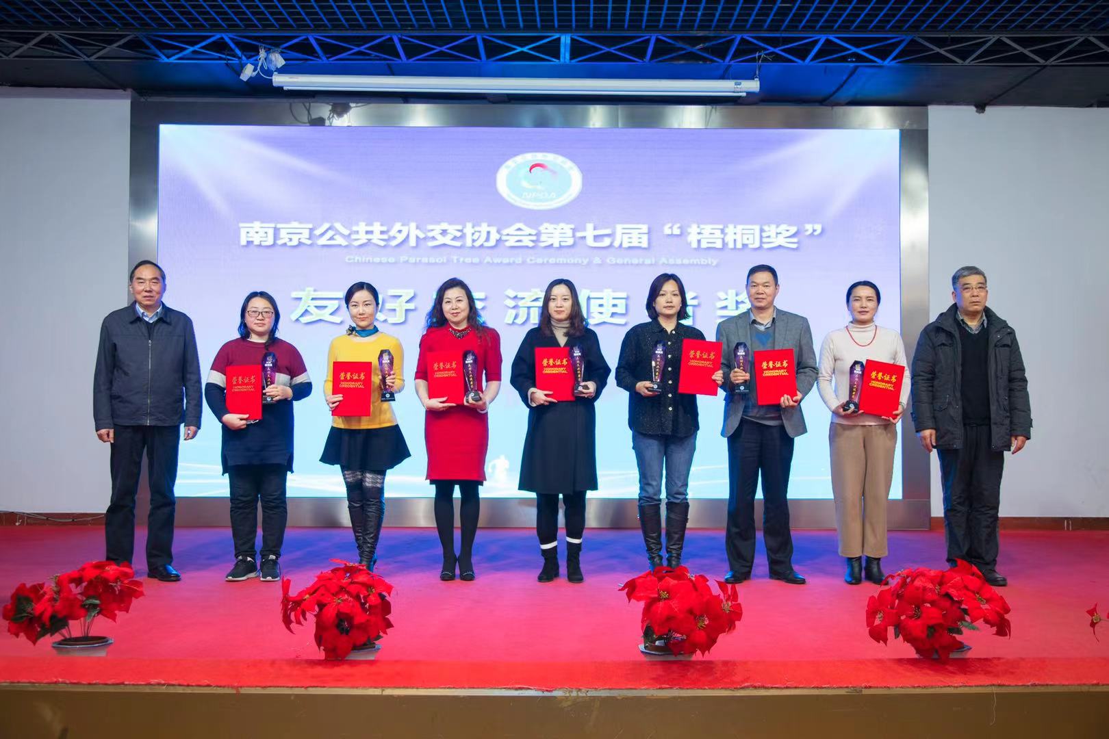 2月3日下午,南京公共外交协会举行第七届“梧桐奖”颁奖活动。十二届市政协主席、公共外交协会会长缪合林,市政协原副主席、公共外交协会常务副会长刘建,市政协副秘书长、港澳台侨和外事委员会主任孙家兴,市政协办公厅二级巡视员庞照银等出席仪式并为获奖者颁奖。今年的评选活动共选出“守望相助爱心奉献奖”个人5名,团体4名;“友好交流使者奖”个人7名,团体1名;“优秀学术研究奖”个人2名;“精品文化创意奖”个人3名,团体2名;“年度突出贡献奖”个人4名,团体1名;“协会工作先进奖”个人2名。