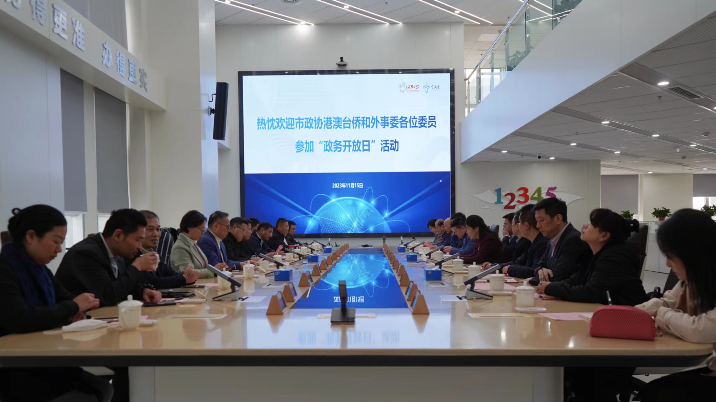 11月15日上午,市政协港澳台侨和外事委员会主任李保平、副主任张敏率部分在宁港澳委员、外事委委员、特邀代表人士等赴市政务办调研市政务服务工作并进行座谈交流。市政务办主任毛银玲,副主任孙文、邹毅智等陪同调研。