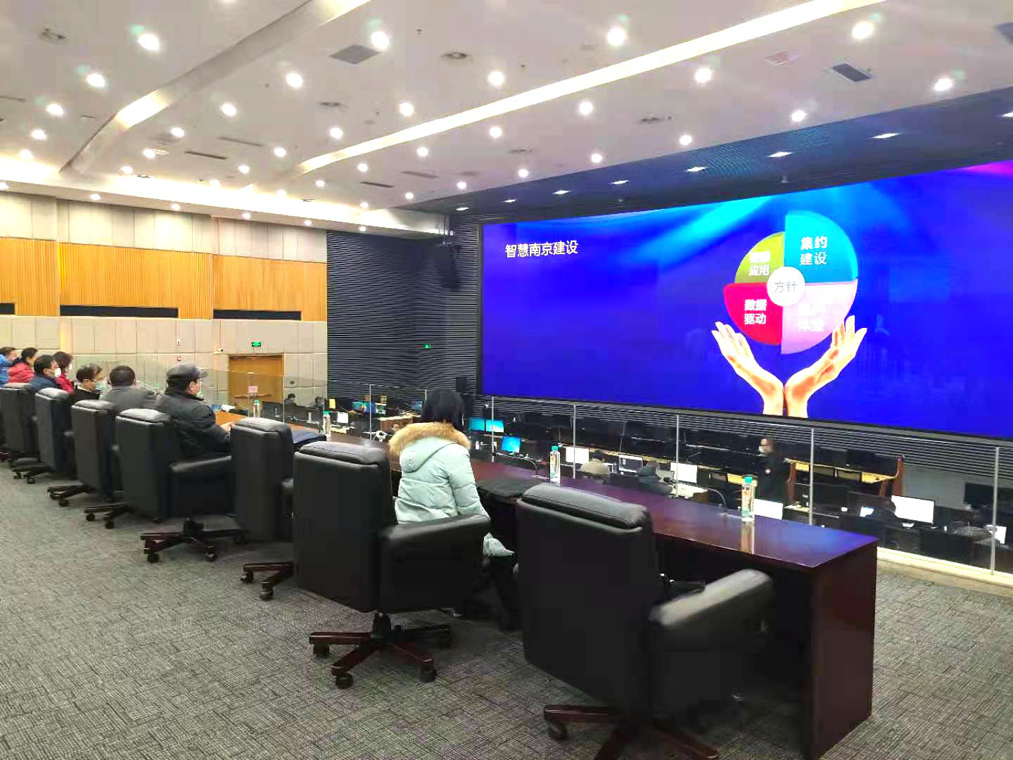 走访调研中,市政协人资环(城建)委一行首先参观了智慧南京中心,听取了大屏介绍演示。智慧南京中心是城市管理运行中心、展示中心和指挥中心,是南京市智慧城市建设成果的集中体现,是南京市民生服务与政务应用集中汇聚的中心,是南京市基础信息资源集中交换的中心。