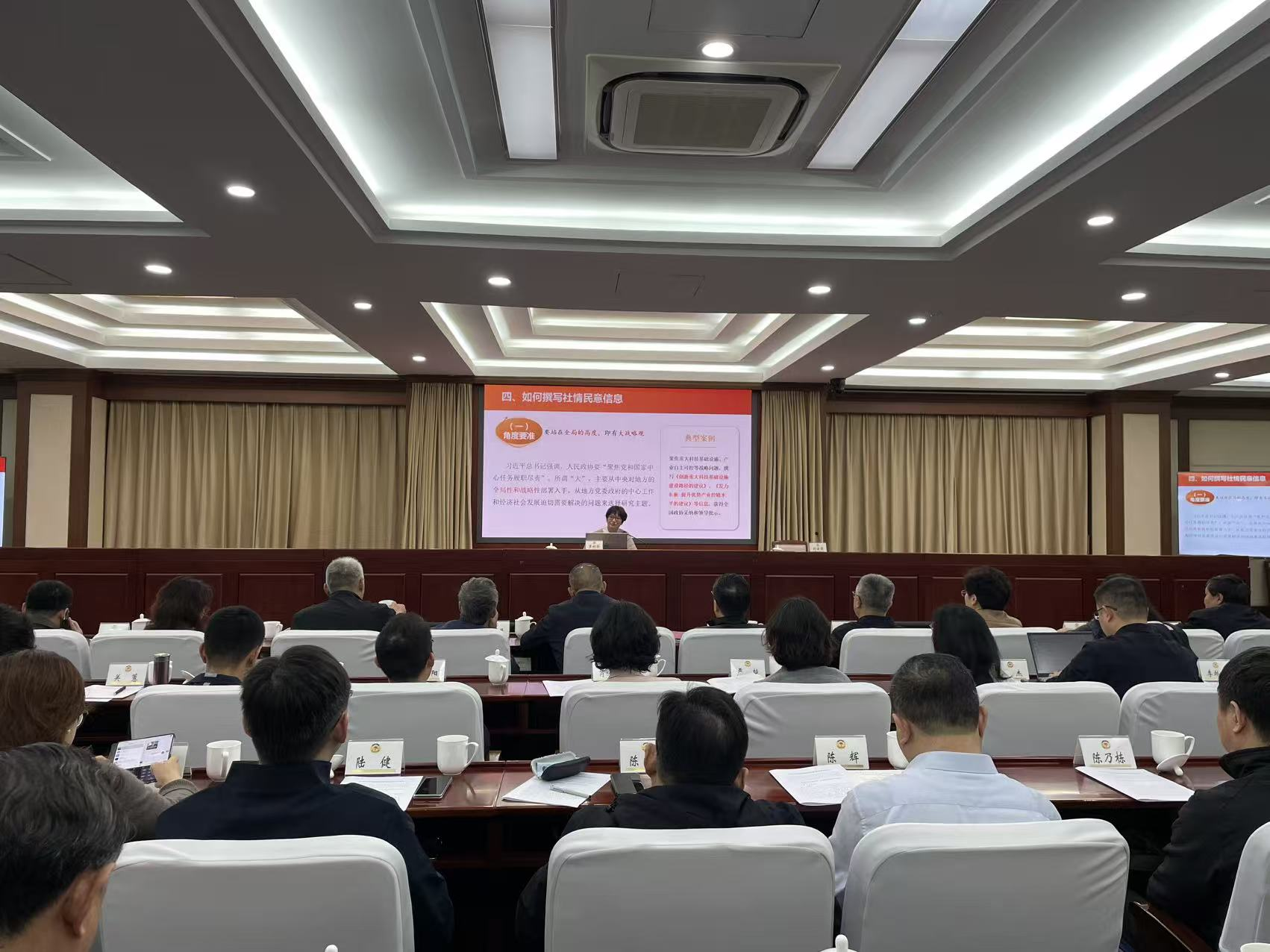 4月15日上午,市政协举办社情民意信息专项培训,十五届市政协届中增补委员、各界别组委员代表及部分机关干部参加培训。